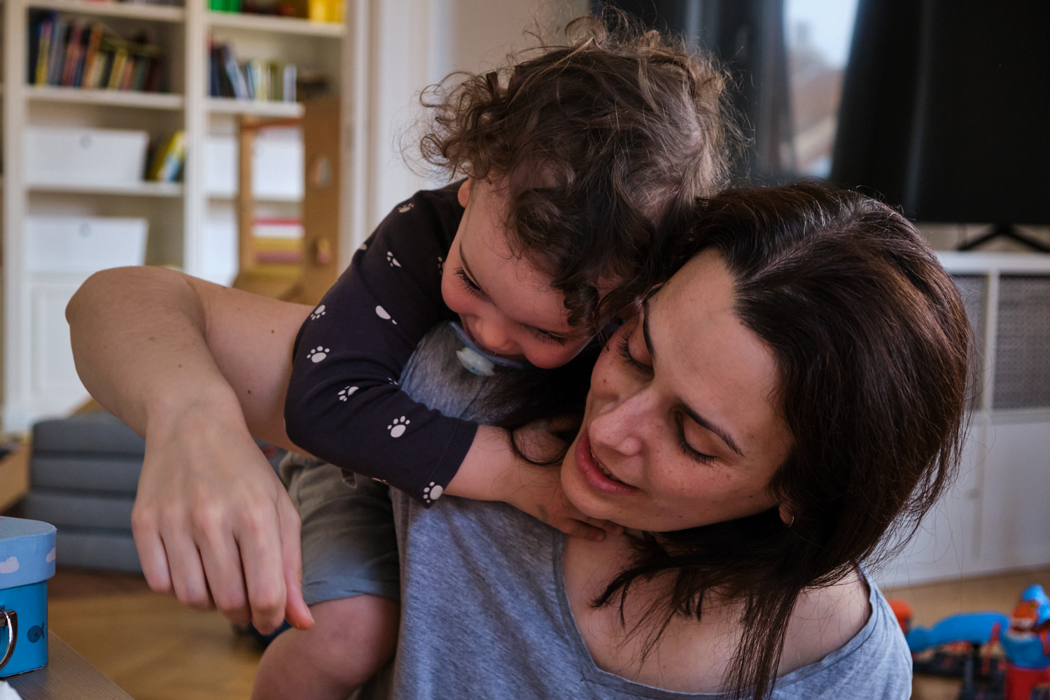 Statt sie zu nerven, habe ich sie einfach beobachtet, die Kamera immer griffbereit. Und dazu immer mehr mit Linien, Spiegelungen, Symmetrie, Formen, Licht und Schatten gespielt. Das Familienleben dokumentieren, ja. Aber bitte mit einem Hauch Pep, Poesie und Magie! Et voilà!